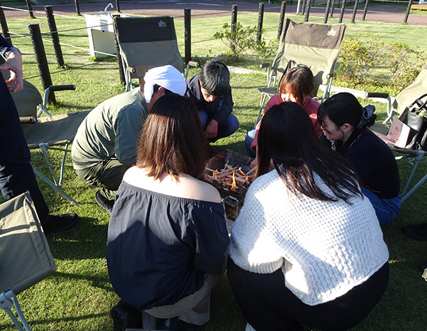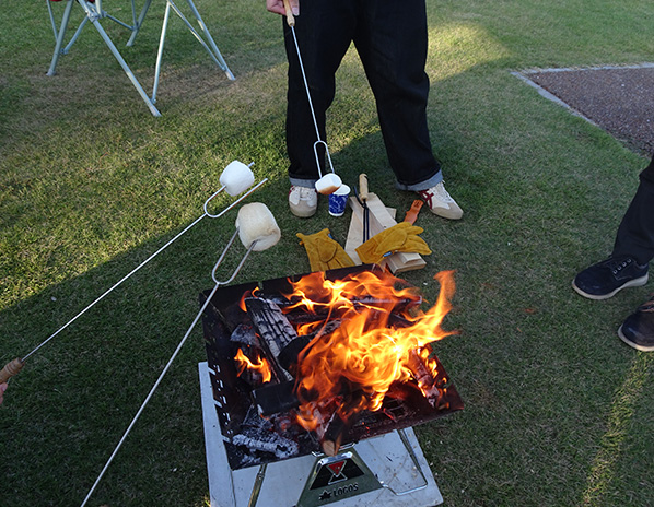 デイキャンプで焚き火体験。焚き火を囲んで楽しく交流!美味しいホットサンドも楽しめる!