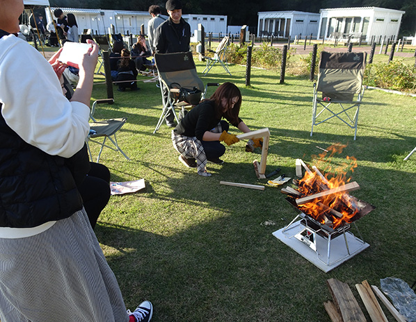 (バトニング、フェザースティック作り) - 焚き火体験(火起こし)
